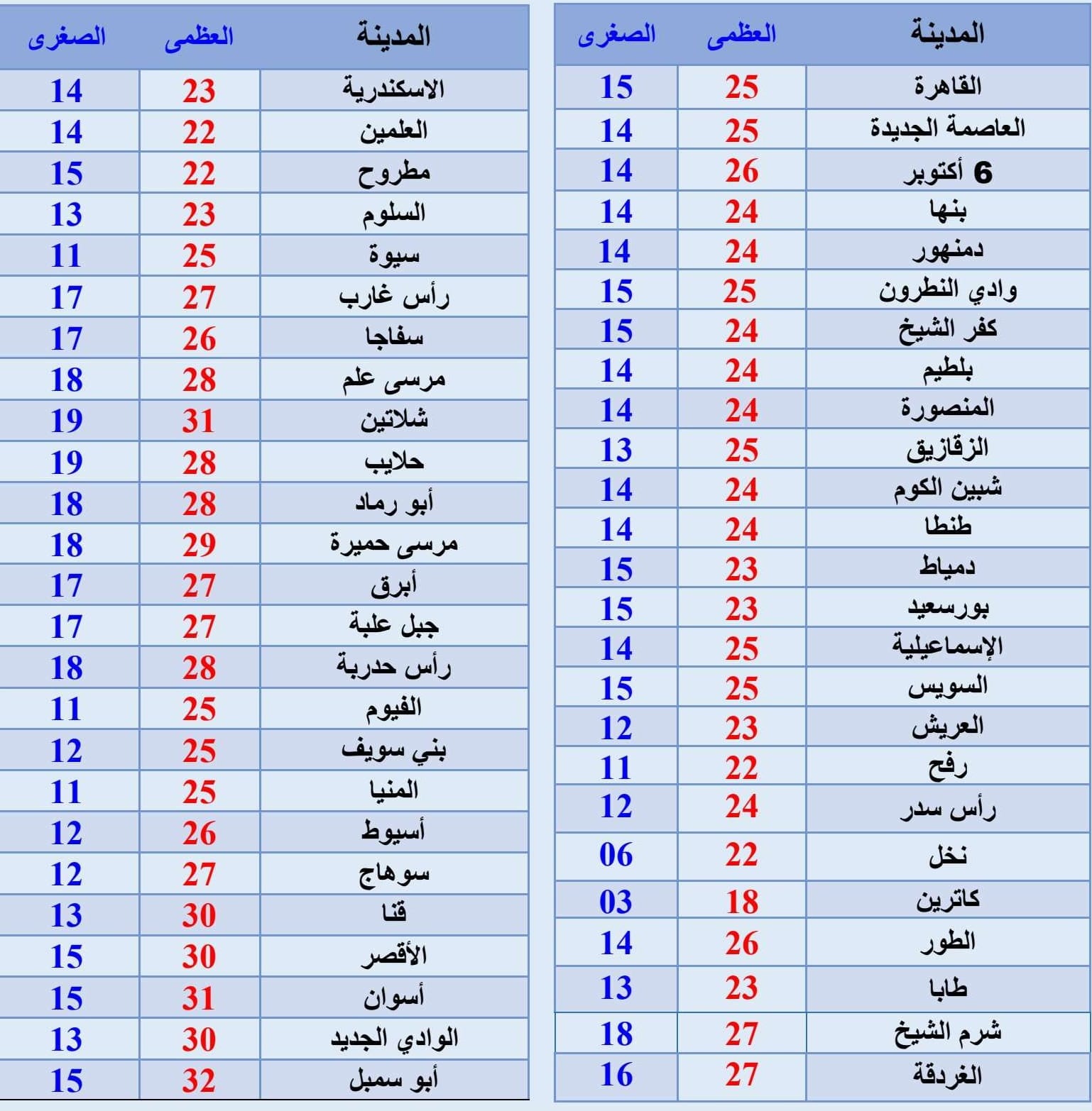 تفاصيل درجات الحرارة غدا علي مختلف المدن