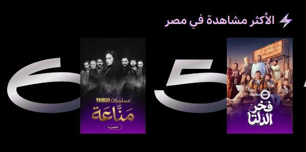 كما احتل مسلسل «فخر الدلتا» للفنان أحمد رمزى، المرتبة الخامسة ضمن قائمة الأعلى نسبة مشاهدة على منصة «يانجو بلاي».