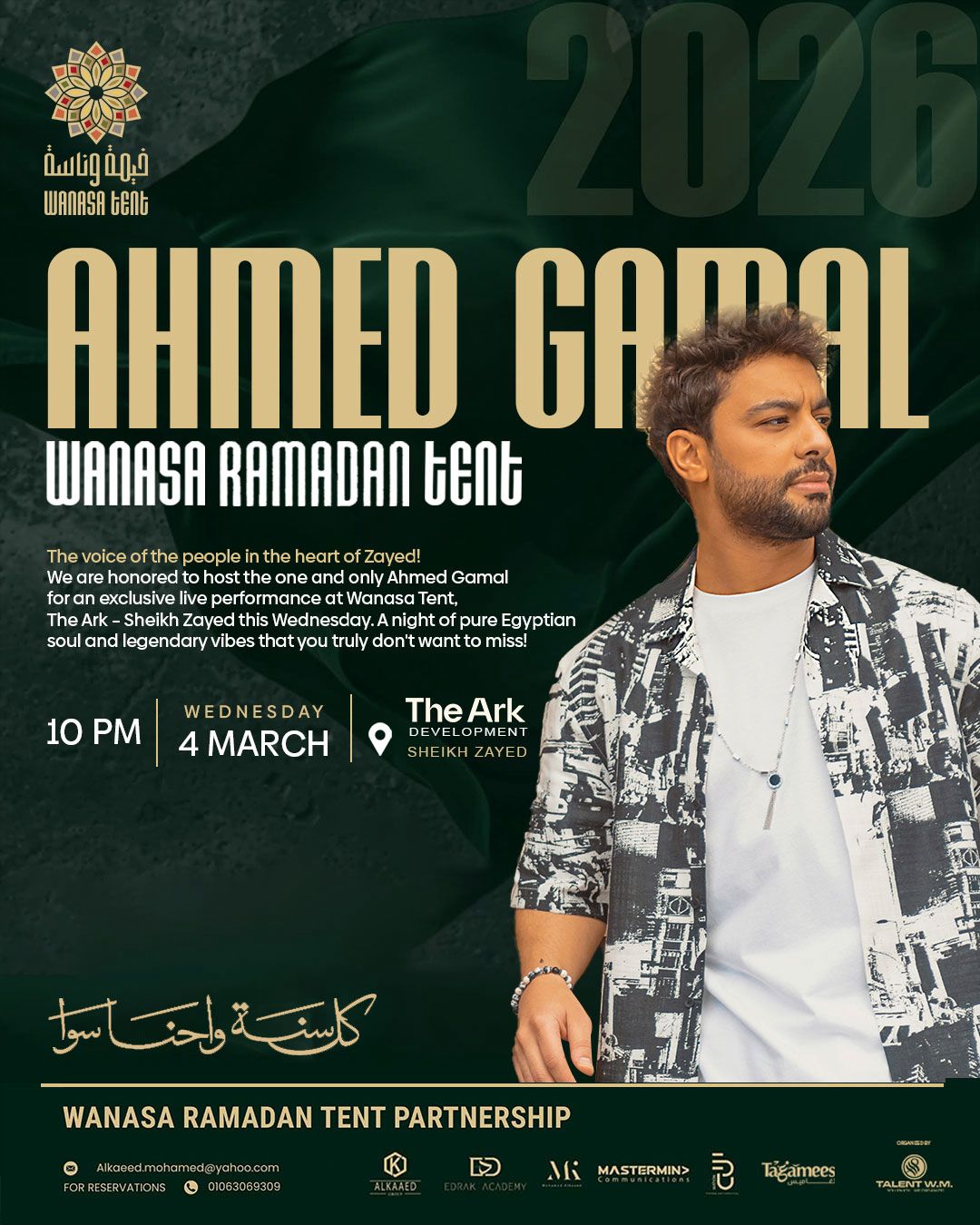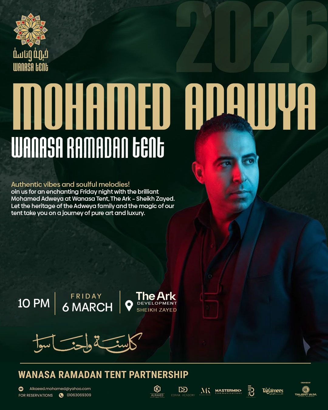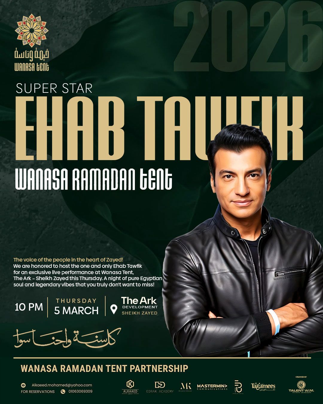 يُذكر أن المنتج ومنظم الحفلات وليد منصور كان قد اختتم مؤخراً فعاليات مهرجان شتاء مدينتي بحفل للنجم الكبير أحمد سعد، وسبقه حفل ضخم لنجم الوطن العربي تامر حسني، وهو ما يعزز الثقة في قدرته على تقديم موسم رمضاني استثنائي داخل خيم وناسة هذا العام.