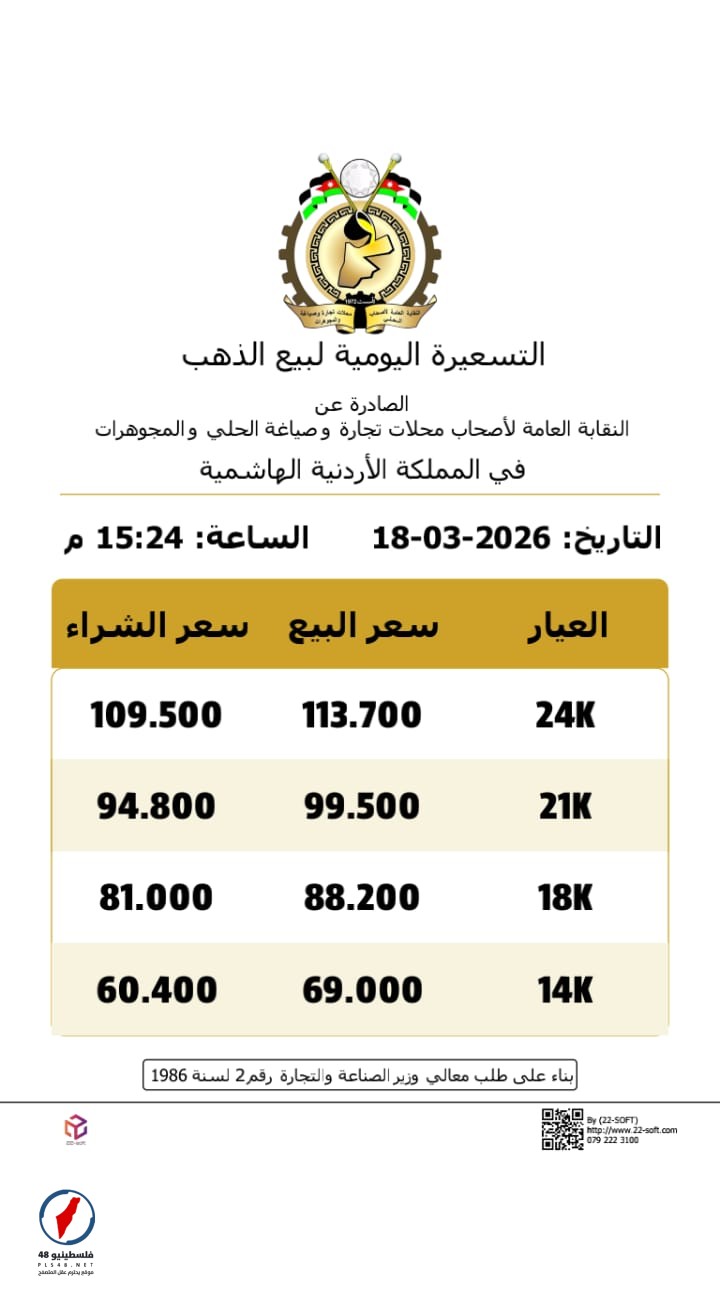 لم يتوقف الانخفاض عند عيار 21 فقط، بل شمل جميع العيارات الرئيسية، حيث هبط سعر بيع غرام الذهب عيار 24 إلى 113.7 دينار، وانخفض سعر عيار 18 إلى حوالي 88.2 دينار، بينما استقر عيار 14 عند 69 دينار في التسعيرة الثالثة، مما يعكس اتجاه البيع والشراء في السوق المحلي وتأثره بالعوامل الخارجية والداخلية.