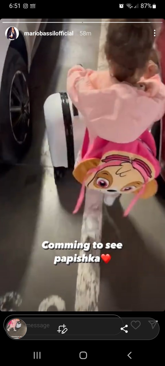 نشر الممثل الكوميدي ماريو باسيل صورا عبر خاصية “الستوري” على حسابه على انستغرام ظهرت فيها ابنته في موقف المطار، مشيراً إلى انها آتية لرؤية والدها.