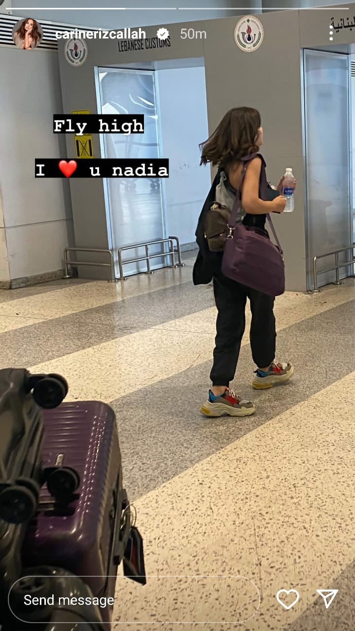 نشرت الممثلة والكاتبة كارين رزق الله، صوراً عبر خاصيّة “ستوري” عبر حسابها على “انستغرام”، لابنتها الكبيرة الممثلة ناديا شربل، وهي تغادر مطار بيروت إلى بريطانيا. وقالت كارين “بريطانيا تنتظرك، أحبك ناديا”.