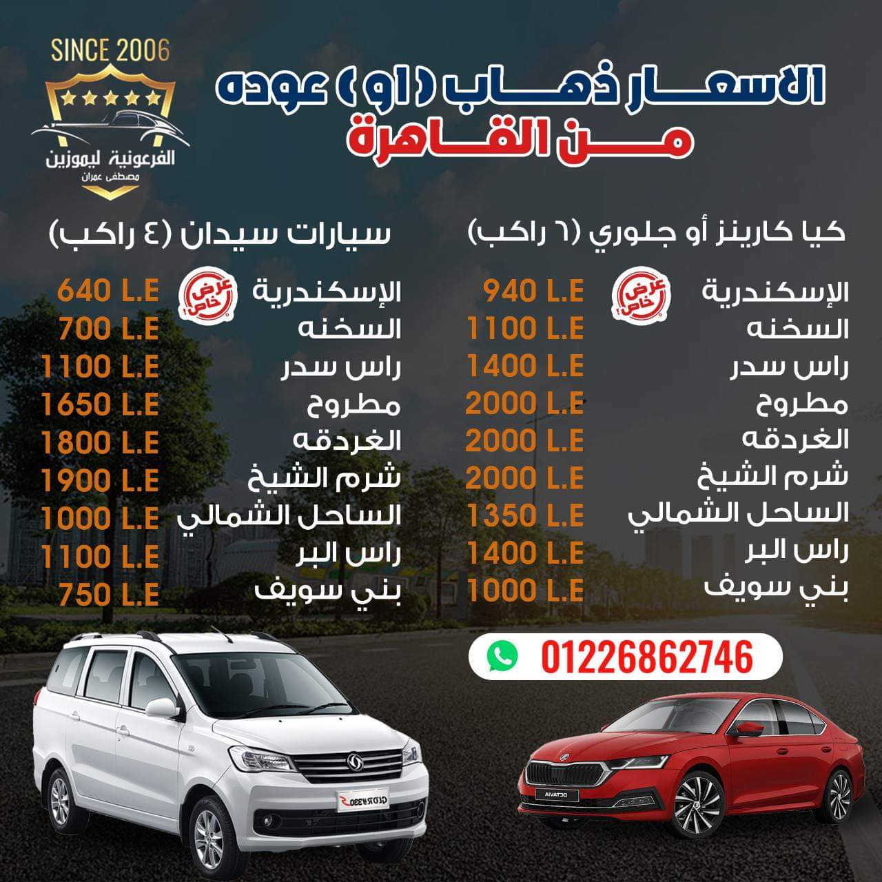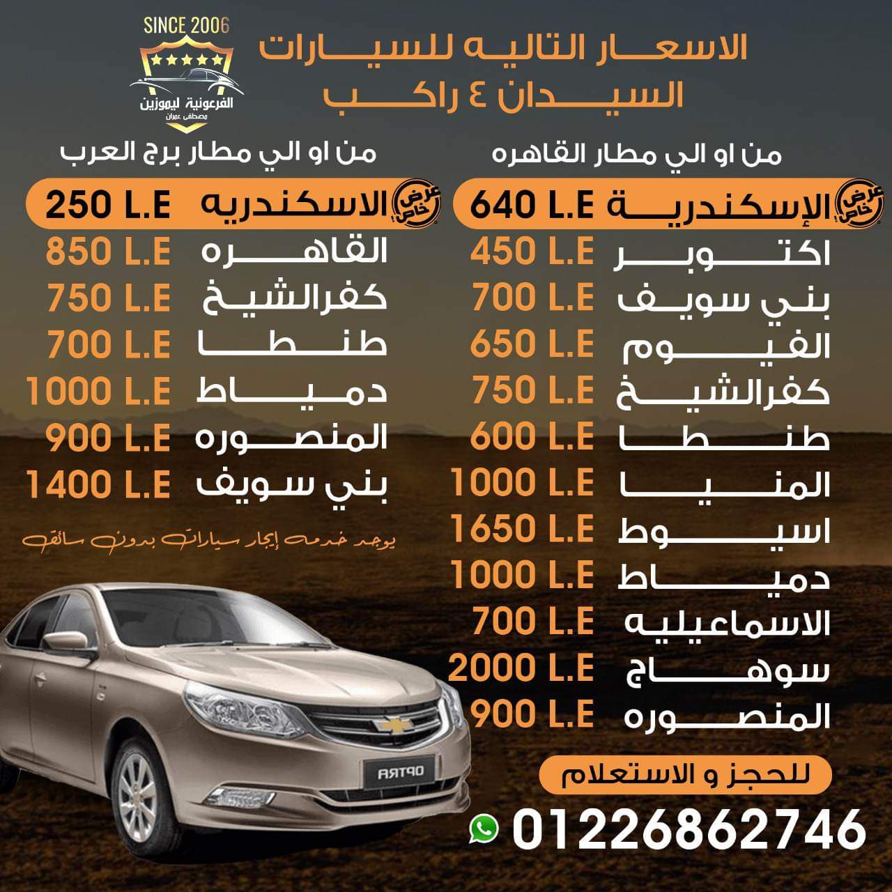 وتوفر الشركه عروضها داخل كل الجمهوريه ب اقل السيارات وأقل الاسعار